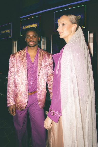 Leder, Glitzerstoffe, tiefe Ausschnitte, goldene Akzente und scharfe Silhouetten erinnern an die wilden Shows im „International Hotel“ – heute das Westgate wo Elvis zwischen 1969 und 1976 über 600 Auftritte gab.